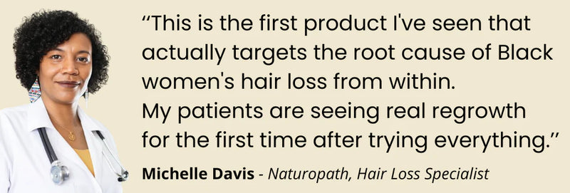 Finally something made by women who actually experienced our specific hair loss—we learned that Black women's hair loss is usually inflammatory, starting from inside, which is why nothing topical ever worked.